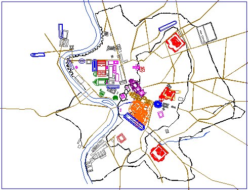 A map of the Ancient city of Rome. The key to the map is as follows: